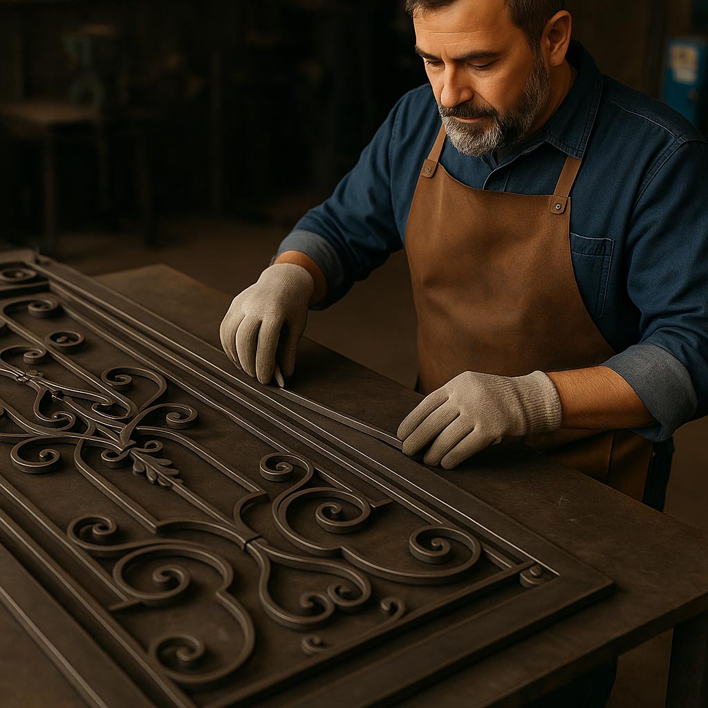 Demir Sanatı’nda her iş, atölyede kesilen ilk profil ile değil, çizgide alınan kararla başlar. Onaylanan tasarım, doğru et kalınlığı ve ölçülerle profile aktarılır; kesim, büküm ve kıvırma adımları Osman Usta’nın yıllardır kullandığı kalıplarla, mengenelerle ve özel şablonlarla yapılır. Line–art panolarda her kıvrım, ferforje korkuluklarda her spiral; tek tek elde şekillendirilir. Kaynak aşamasında ise hem sağlamlık hem de estetik düşünülür; görünen kaynaklar taşlamayla yumuşatılır, taşıyıcı noktalar gizlenerek temiz bir silüet elde edilir.